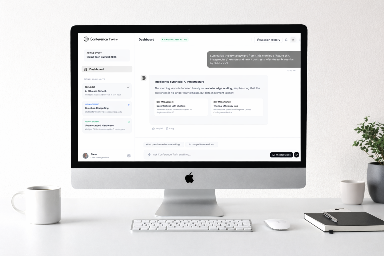 Instead of spending $20K on booth space and walking away with a spreadsheet of badge scans, sponsors gain real-time visibility into what attendees are actually asking, prioritizing, and evaluating.